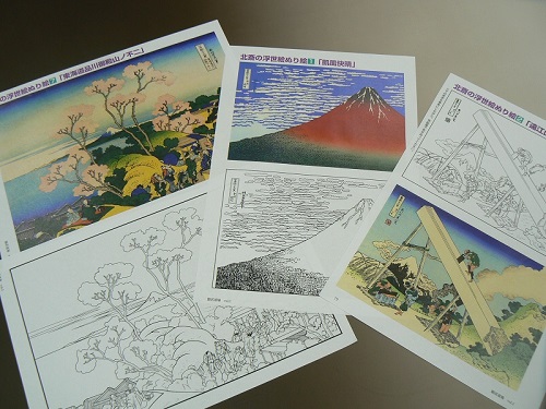 「運動」系カリキュラムの項でもご紹介しましたが、健康生活・生き方マガジン『わかさ』別冊『脳活道場』との連動企画では、「浮世絵塗り絵」をカリキュラムに取り入れています。